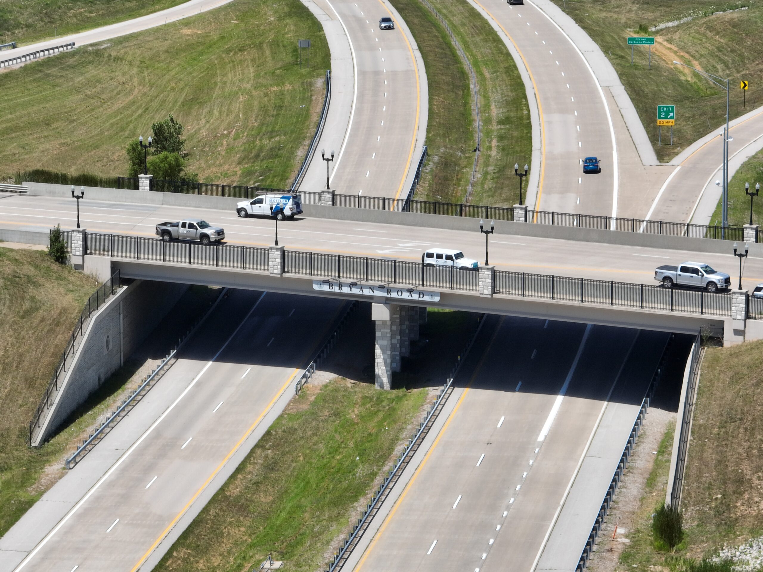 CBB also assisted the design-build team in the design of a roundabout at the termination of the westbound on/off ramps at Bryan Road. Duties included geometric review, elevation warping, grading, signing, and marking. As well as the design of the roundabout, CBB assisted the design-build team for various mainline tasks such as cul-de-sac/turn around details, gore warping details, overhead truss design and signpost height/quantities calculations.